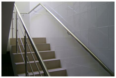 Перила c 3-мя ригелями и пристенный поручень из нержавеющей стали. Московская область, г. Орехово-Зуево. Фото 1.