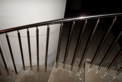 Лестничное ограждение из нержавейки с тремя ригелями. Фото 4.