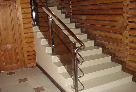 Лестничное ограждение из нержавейки с тремя ригелями. Фото 3.
